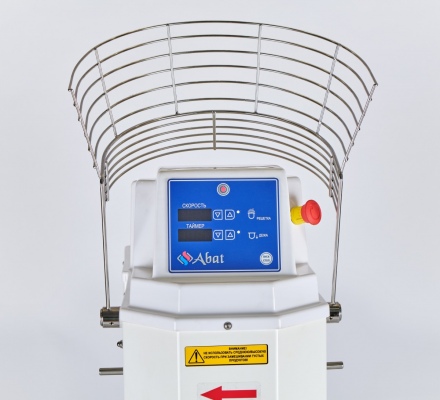 - откидная защитная решетка, защищающая персонал от вращающихся рабочих частей машины и позволяющая добавлять ингредиенты в дежу, не прерывая процесс замеса (при поднятии защитной решетки работа тестомеса автоматически прекращается);