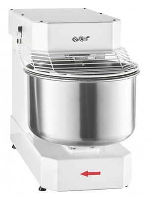 Материал корпуса тестомеса - высококачественная конструкционная сталь с полимерным покрытием. Металлические детали машины, контактирующие с продуктом во время замеса (спираль, дежа, нож) изготовлены из нержавеющей стали марки AISI 304.