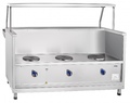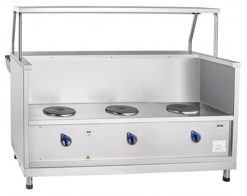 Мармит стационарный предназначен для кратковременного сохранения в горячем состоянии первых блюд в наплитных котлах. В комплект модуля входят направляющие для подносов, 1 полка с подсветкой для выкладки порционных блюд. Есть регулировка мощности конфорок. Регулируемые по высоте ножки. Все элементы изготовлены из нержавеющей стали AISI-304