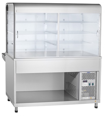 Прилавок-витрина холодильный ABAT ПВВ(Н)-70КМ-С-01-НШ используется для демонстрации и раздачи холодных закусок, третьих блюд и охлажденных напитков, а также их хранения при заданной температуре.
