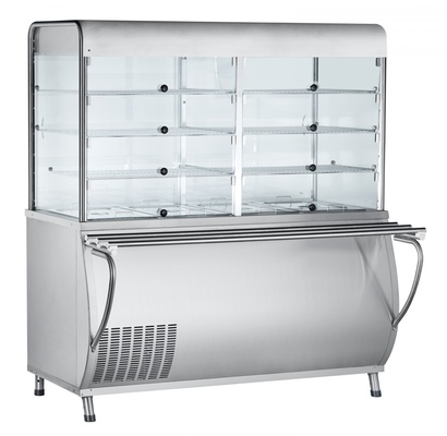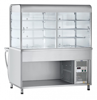 Прилавок-витрина холодильный ABAT ПВВ(Н)-70М-С-НШ используется для демонстрации и раздачи холодных закусок, третьих блюд и охлажденных напитков, а также их хранения при заданной температуре.