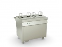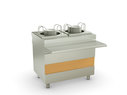 Модуль для подогрева тарелок предназначен для хранения и подогрева тарелок диаметром до 320 мм. Тарелки хранятся на специальной платформе с пружинным механизмом, который удерживает над поверхностью столешницы небольшое количество тарелок. Остальные тарелки находятся в нагреваемом объеме. Подъем платформы с тарелками происходит автоматически по мере их расходования. Температура верхних тарелок не менее 30 °C, температура нижних не менее 60 °C.
