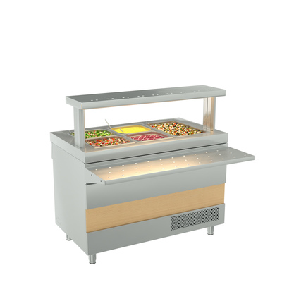 Охлаждаемый стол предназначен для раздачи холодных напитков, салатов, кисломолочных продуктов и других блюд, требующих хранения в охлажденном состоянии.