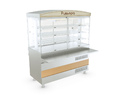 - В верхней части витрины установлены две лампы: яркая подсветка позволит представить вашу продукцию в наиболее выгодном ракурсе.