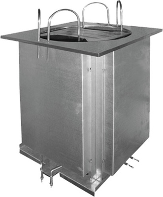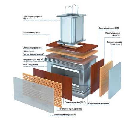 Предназначен для хранения при температуре от 30ºС до 60ºС до 45 тарелок. Подвижные ограничители позволяют загружать тарелки различного диаметра от 180 до 300 мм. Тарелки хранятся на специальной платформе с пружинным механизмом, который удерживает над поверхностью столешницы лишь несколько штук, а остальное количество тарелок находится в подогреваемом объёме. Подъём тарелок происходит автоматически по мере их использования.