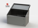 Каркас ларя имеет сварную конструкцию, изготовлен из профильной нержавеющей трубы 25х25мм. Стенки изготовлены из листа толщиной 1мм, усилены профилями. На стенках пробиты отверстия для вентиляции.