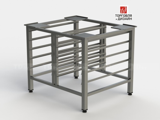 Подставка предназначена для размещения на ней пароконвектомата или другого оборудования. Цельный сварной каркас из нержавеющей трубы позволяет выдерживать значительные нагрузки. В подставке имеются два ряда направляющих для хранения гастроемкостей.