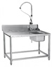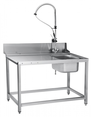 СПМП-7-4 - предмоечный стол, имеет цельнотянутую ванну для предварительного ополаскивания посуды. Выполнен полностью из нержавеющей стали. Для усиления конструкции стол имеет обвязку по четырем сторонам. Путем несложного монтажа может устанавливаться как в левом так и в правом исполнении. Регулируемые по высоте ножки. Душ для мойки посуды.
