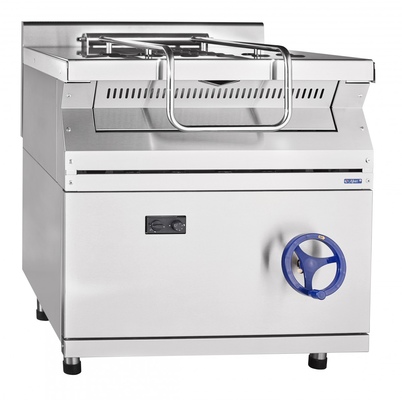 Сковорода имеет плавную регулировку температуры жарочной поверхности в диапазоне 100-340 С. Нагрев осуществляется горелкой, равномерно распределяющей тепло по поверхности чаши. Дно чаши толщиной 10 мм позволяет надежно удерживать тепло в режиме приготовления. Сковорода снабжена механизмом подъема и опускания чаши, что обеспечивает удобство очистки и обслуживания сковороды. Крышка предотвращает потерю тепла и фиксируется в любом положении. Боковая и задняя обшивки изготовлены из крашенного оцинкованного металла. Сковорода имеет регулируемые по высоте ножки.