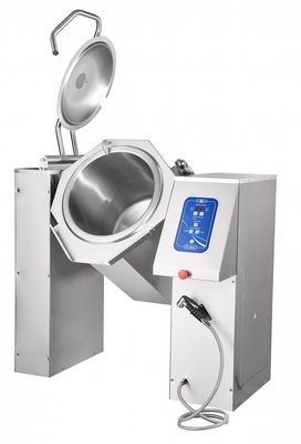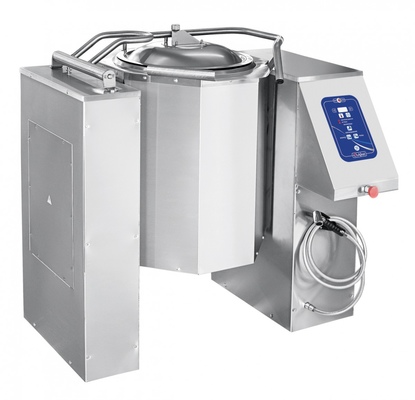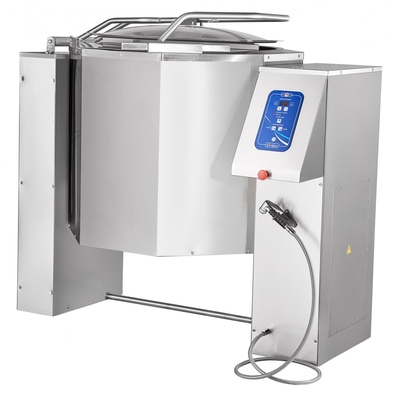 Опрокидываемые котлы без миксера имеют пульт программного управления, а также возможность регулировки температуры "пароводяной рубашки" в диапазоне 20-120 градусов. Оснащаются душем и электрическим приводом опрокидывания сосуда.