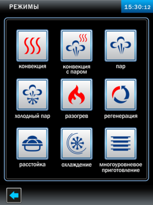 Несмотря на широчайшие функциональные возможности этих пароконвектоматов, управлять ими очень просто. Линейка пароконвектоматов имеет яркую, предельно информативную сенсорную панель управления высокого разрешения с индикацией на русском языке и подробной инструкцией.