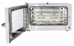 - дверца с двойным жаропрочным остеклением с воздушной прослойкой открывается в бок и исключает возможность получения ожогов при работе с оборудованием