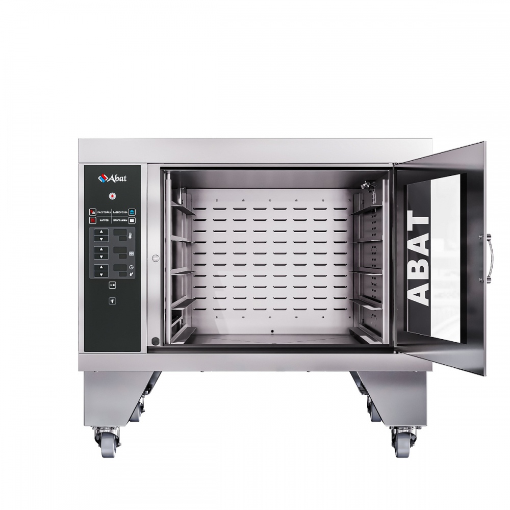 Равномерное распределение тепла достигается благодаря применению конвекции. Пароувлажнение достигается испарением влаги из ванночки под действием ТЭНа. Для наполнения ванны водой, нет необходимости ее снимать. Стеклянная дверь и подсветка камеры позволяют легко контролировать процесс расстойки.