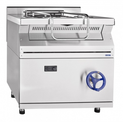 овощных изделий на предприятиях общественного питания самостоятельно или в соста ве технологических линий. Сковорода имеет плавную регулировку температуры жарочной поверхности в диапазоне 100-340 С. Нагрев осуществляется горелкой, равномерно распределяющей тепло по поверхности чаши. Дно чаши толщиной 10 мм позволяет надежно удерживать тепло в режиме приготовления. Сковорода снабжена механизмом подъема и опускания чаши, что обеспечивает удобство очистки и обслуживания сковороды. Крышка предотвращает потерю тепла и фиксируется в любом положении. Боковая и задняя обшивки изготовлены из крашенного оцинкованного металла. Сковорода имеет регулируемые по высоте ножки.
