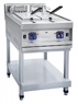 Имеет две ванны по 18 литров каждая, с раздельной плавной регулировкой температуры в диапазоне 50-200 С. Слив масла осуществляется из крана под ванной в гастроёмкость, вставляемую в специальные направляющие в подставке.Мощные круглые ножки позволяют регулировать высоту.
