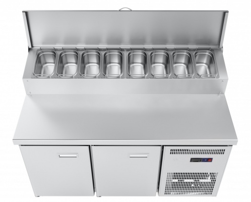 Стол холодильный СХС-80-01П - среднетемпературный гастронормированный стол для пиццы. Предназначен для хранения полуфабрикатов для пиццы, а также готовой пиццы. Может использоваться как самостоятельно, так и в составе технологических линий.