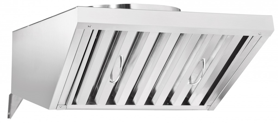 Принцип действия: разогретый воздух, насыщенный парами масла, жира и воды, всасывается вентилятором и проходит через лабиринтные фильтры. Затем пары масла, жира и воды, содержащиеся в воздухе, конденсируются на фильтре благодаря температурному перепаду и стекают в герметичную ванну - жиросборник - расположенную в корпусе зонта. Ванна зонта имеет сливную трубку с резьбой G 1/2'', к которой необходимо подсоединить шаровой кран для слива жидкости.